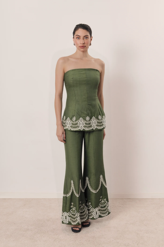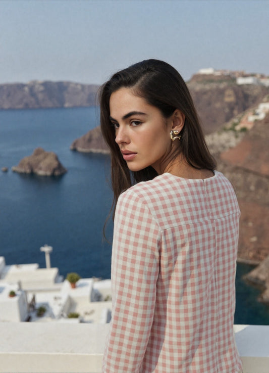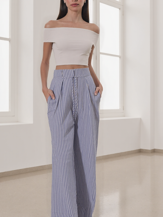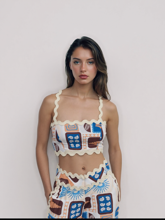 Santorini Waves Co-Ord Set – Printed Crop Top & Wide-Leg Pants